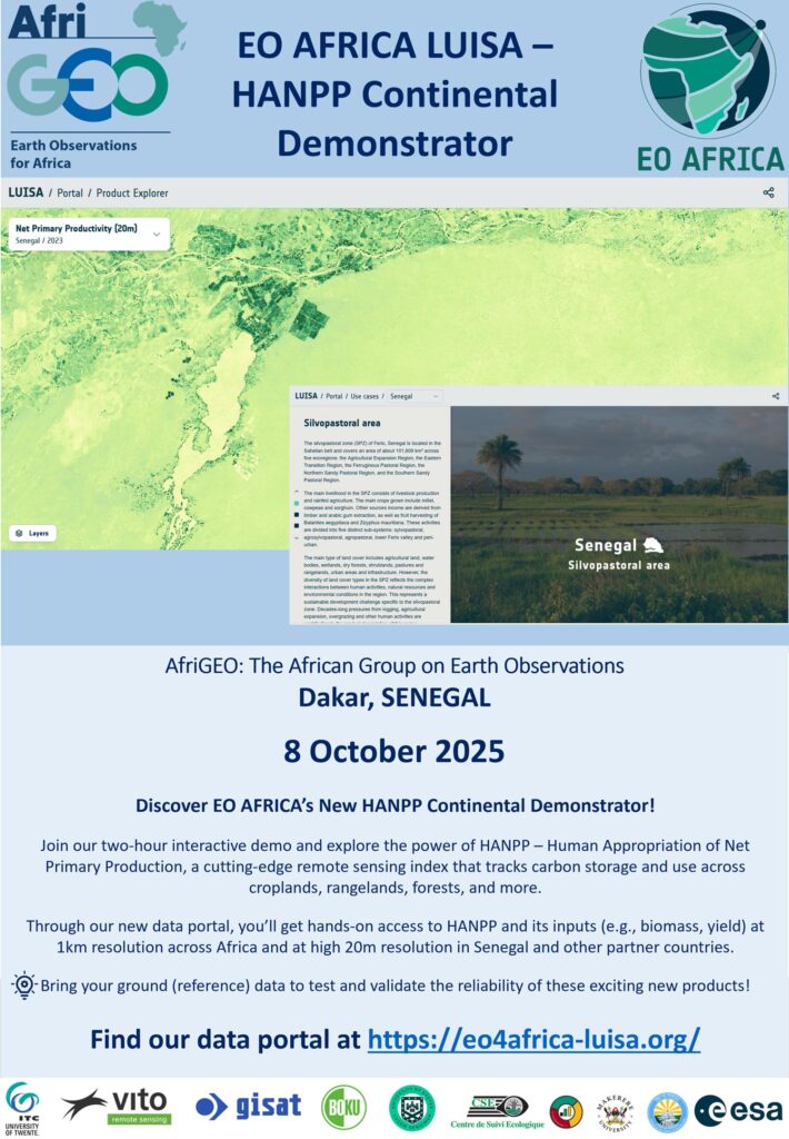 We are excited to announce that the EO AFRICA LUISA project will showcase its HANPP Continental Demonstrator at the upcoming AfriGEO event in Dakar, Senegal on 8 October 2025.